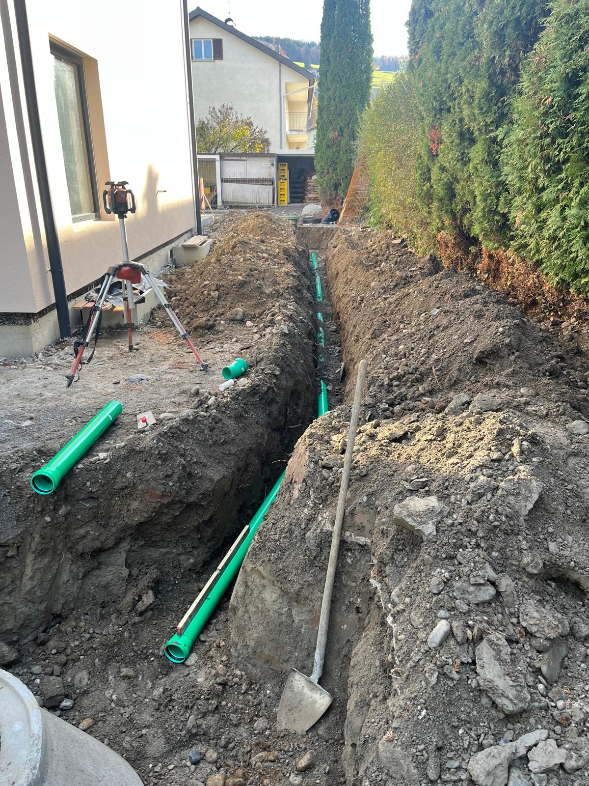 Mit modernster Technik und jahrelanger Erfahrung setzen wir eure Projekte im Erdbau präzise um – von der Planung bis zur Ausführung. Ob Aushub, Kanalverlegung oder die Errichtung von Sickerschächten, wir bieten maßgeschneiderte Lösungen, die auf eure Bedürfnisse abgestimmt sind. Unser Team arbeitet mit höchster Sorgfalt und Effizienz, um eure Baustelle optimal vorzubereiten und langfristige Stabilität zu gewährleisten.